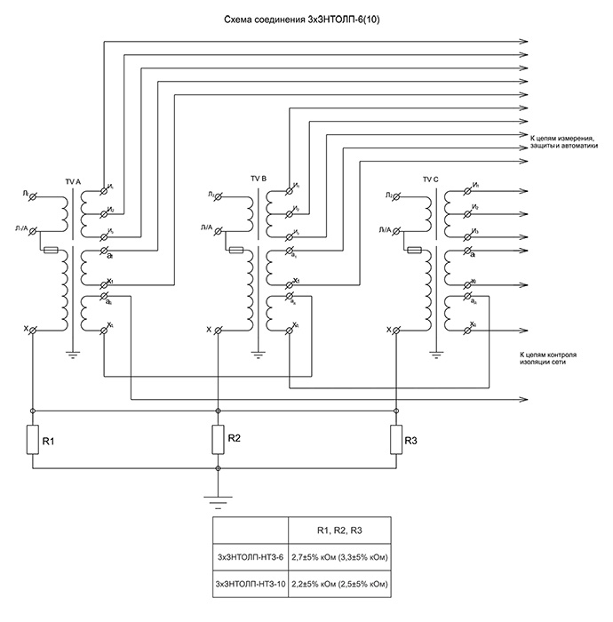 Таблица 1 – Основные параметры трехфазной группы трансформаторов напряжения в составе трехфазной группы 3хЗНТОЛП-НТЗ-6(10)(-01)