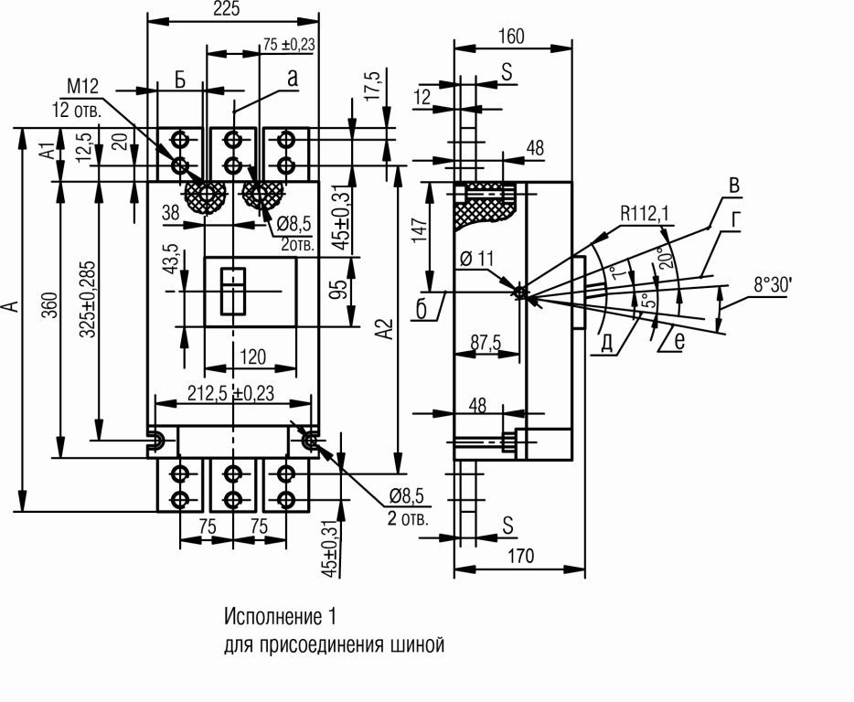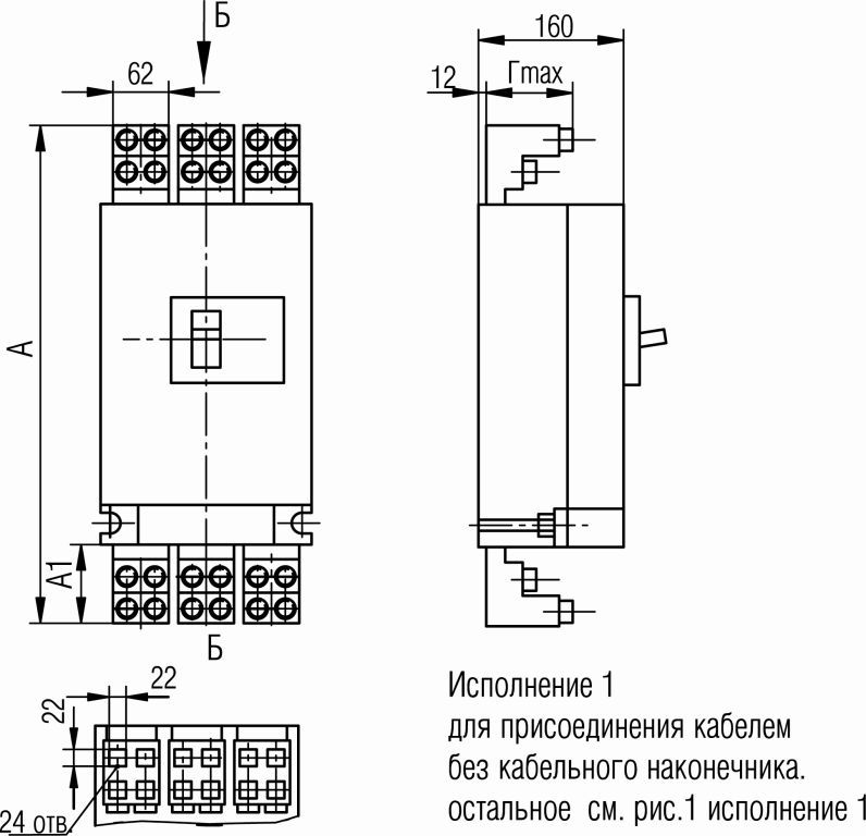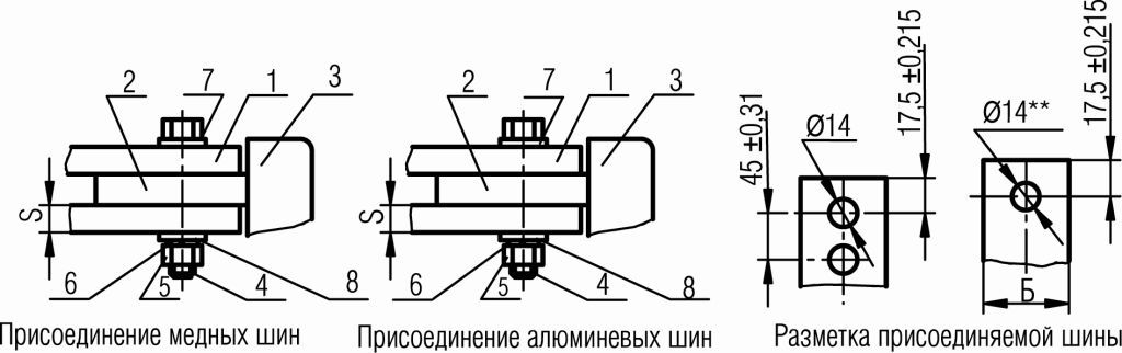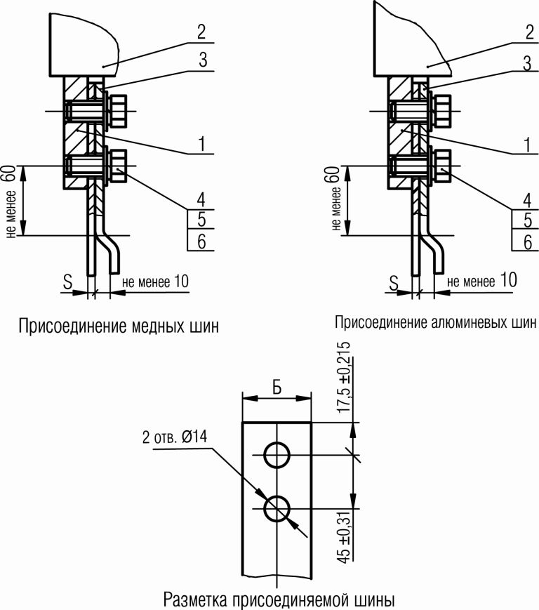 1 - вывод выключателя; 2 - корпус выключателя; 3 - присоединяемая шина