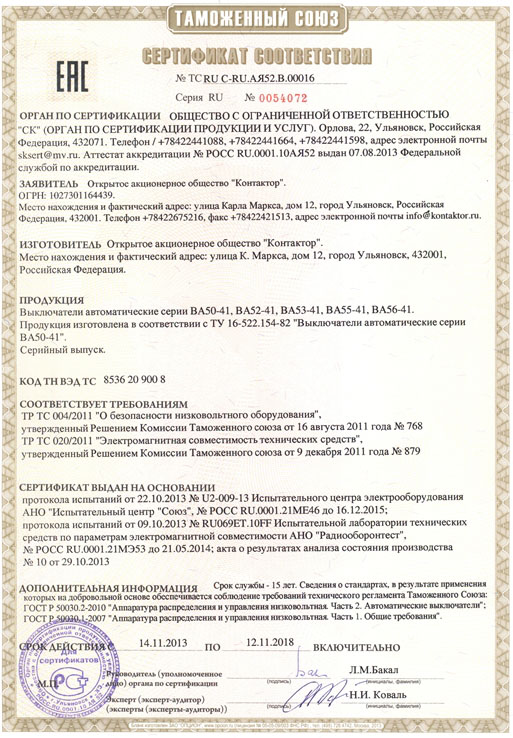 - обладает в зависимости от рода тока и величины напряжения коммутационной способностью - до 135кА;