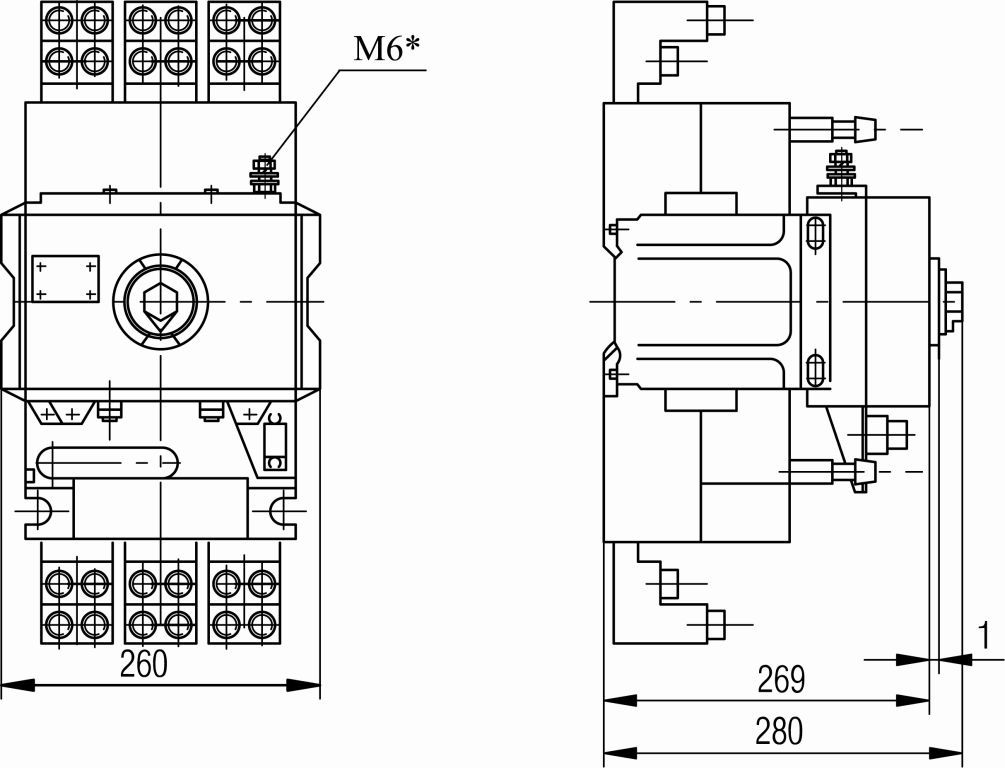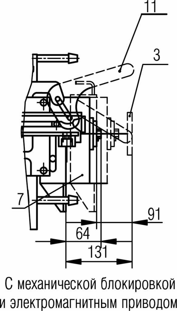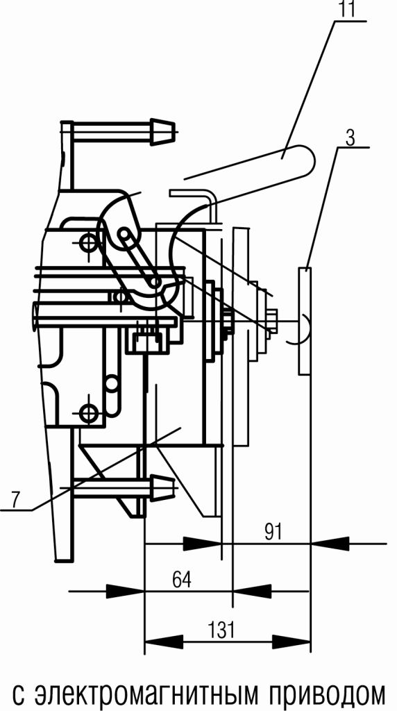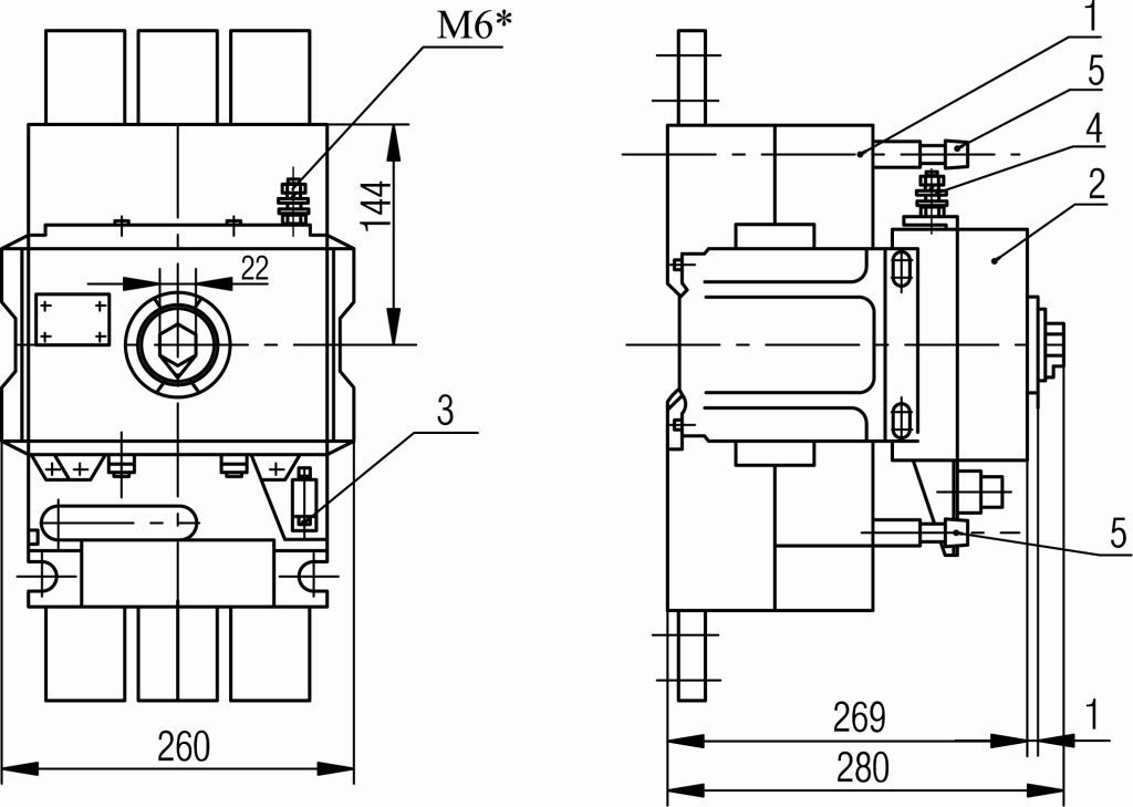 1 - присоединяемая шина; 2 - вывод выключателя; 3 - корпус выключателя