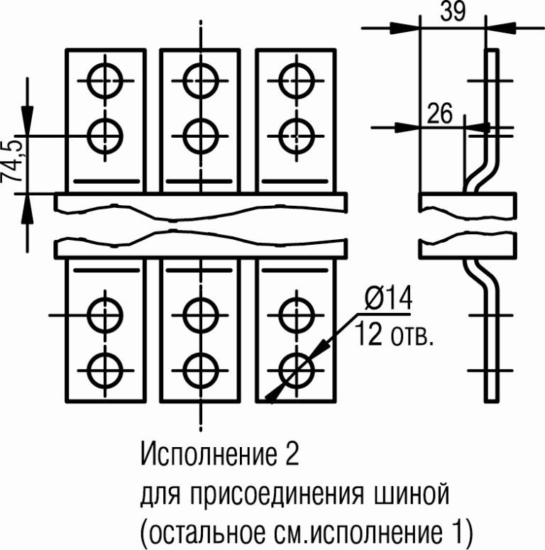 250 | алюминий | 40х4 | УХЛ3 | Болт М12х45 | Шайба 12 | Пружина тарельчатая | ||