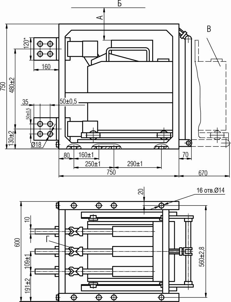 размер А для Э16В - 70 мм; для Э25В - 220 мм