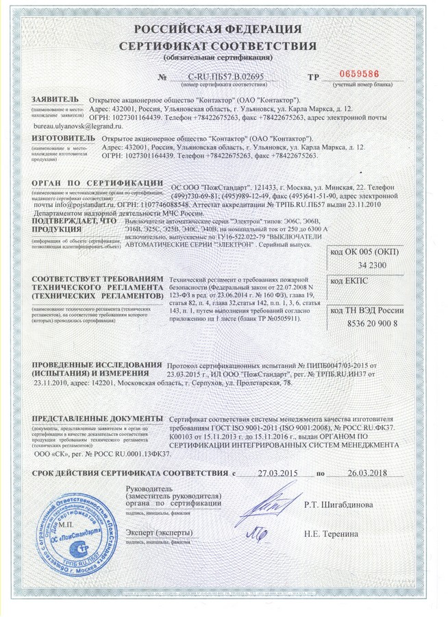 - обладает в зависимости от рода тока и величины напряжения коммутационной способностью - до 115кА;