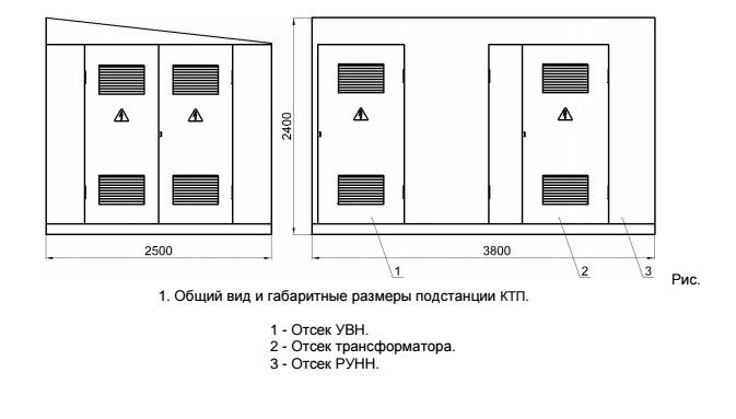 1) тупиковые однотрансформаторные КТП мощностью от 25 до 630 кВА включительно; 2) проходные однотрансформаторные КТП мощностью от 25 до 630 кВА включительно; 3) тупиковые сдвоенные трансформаторные КТП с устройством АВР на стороне 0,4 кВ, мощностью от 25 до 250 кВА включительно; 4) проходные сдвоенные однотрансформаторные КТП с устройством АВР на стороне 0.4 кВ, мощностью от 25 до 250 кВА включительно; 5) проходная двухтрансформаторная КТП мощностью 400, 630 кВА. Для каждого исполнения предусмотрено два способа подключения ввода и вывода: воздушный и кабельный. Короб воздушного ввода может быть применен двух видов - для одно или двустороннего подвода питания. Электрические принципиальные схемы главных цепей КТП выполняются по типовому проекту, либо по требованию заказчика. КОНСТРУКЦИЯ УСТРОЙСТВА И ТИПЫ УСТАНАВЛИВАЕМОГО ОБОРУДОВАНИЯ!!! Конструктивно КТП выполнена в виде модуля киоскового типа и имеет сборно-сварную конструкцию из трех отсеков. Подстанция состоит из: — отсека с устройством высокого напряжения (УВН); — отсека силового трансформатора; — отсека с распределительным устройством низкого напряжения (РУНН). Отсеки УВН, РУНН и силового трансформатора расположены на общей станине, имеющей монтажное основание для установки подстанции. При наличии воздушного ввода, на крышу устанавливается короб с проходными изоляторами, шинным мостом и кронштейном для опорных штыревых изоляторов. В отсеке УВН устанавливается одна (или три для КТП проходного типа) сборные камеры одностороннего обслуживания (КСО). Трансформаторный отсек имеет распашные двери, через которые осуществляется доступ в отсек и возможна установка и демонтаж трансформатора. Трансформаторный отсек рассчитан под установку силового трансформатора любого типа: ТМ, ТМГ, ТСЗ. Двери отсека имеют жалюзи для притока и оттока воздуха, обеспечивающего охлаждение трансформатора, при этом обеспечивается степень защиты не менее IР23 Подключение трансформатора со стороны ВН и НН осуществляется шинами. В отсеке УВН выполнены следующие блокировки: а) механическая блокировка заземляющих ножей с основными ножами, предотвращающая включение выключателя нагрузки (разъединителя) при включенных заземляющих ножах; б) блокировка, не допускающая отключение разъединителей со стороны источника высшего напряжения при включенной нагрузке; В РУНН устанавливаются автоматические выключатели (рубильники с предохранителями) для защиты отходящих линий. В КТП предусмотрен учет электроэнергии В комплект поставки входят: — подстанция поставляется в сборе в полной заводской готовности; — измерительный приборы (согласно комплектовочной ведомости); — счѐтчики учѐта электроэнергии (согласно заказу); — эксплуатационная документация (согласно комплектовочной ведомости). Утепленные КТП (сэндвич) для районов крайнего севера - представляет собой киосковую конструкцию с утепленными стенами и крышей. Температура внутри подстанции поддерживается в необходимом диапазоне по требованию Заказчика. Комплектация аналогична киосковой подстанции и по желанию Заказчика, также может быть установлена дополнительная необходимая аппаратура (АВР, сигнализации и т.д.) согласно опросному листу.