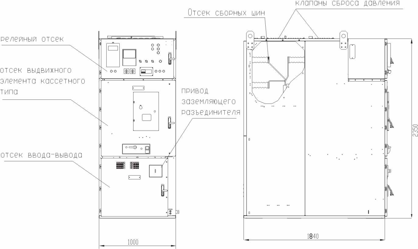 Шкаф КРУ состоит из отсека ввода-вывода, отсека выдвижного элемента, релейного отсека и отсека сборных шин.