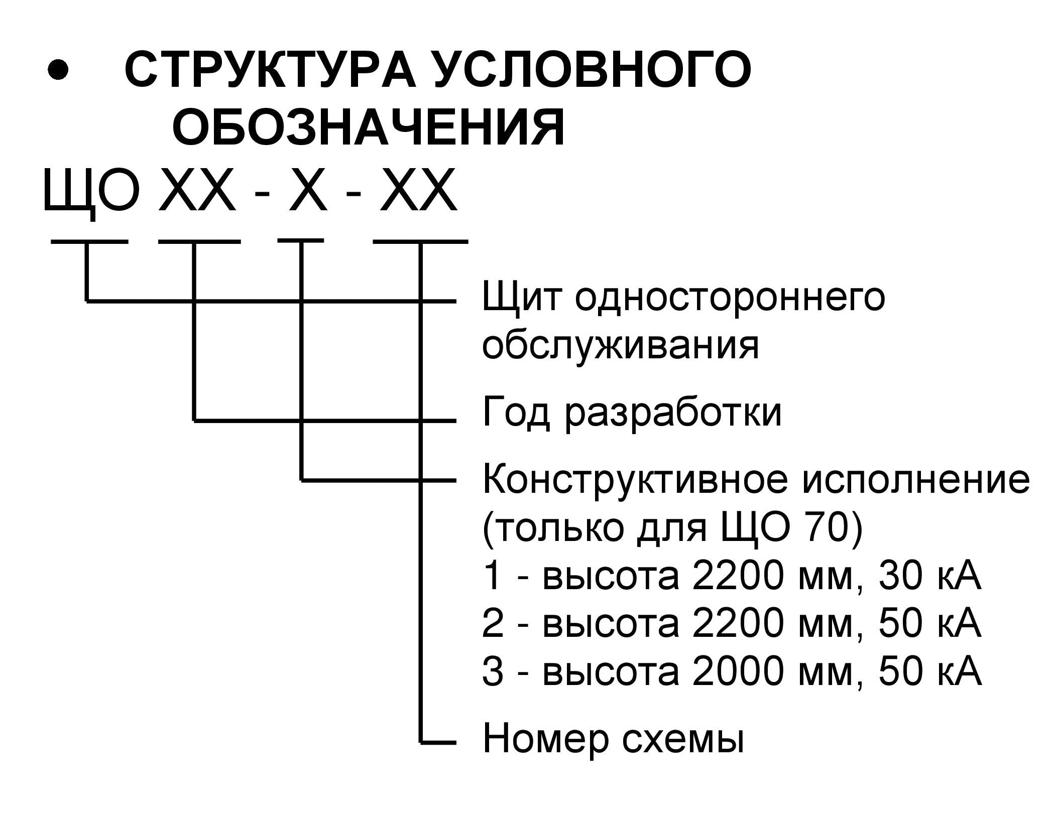 Панель представляет собой стальной сварной каркас с дверью, закрывающейся на замки. Внутри каркаса располагается рама с установленной на ней аппаратурой, управление которой осуществляется устройствами, установленными на передних стойках каркаса Для крепления сборных шин в верхней части панели устанавливается кронштейн с изоляторами. На фасаде панели ЩО 70 сверху устанавливается приборная панель, которая одновременно служит и ограждением сборных шин. Сборка панелей в щит производится болтовыми соединениями через отверстия в стойках панелей.