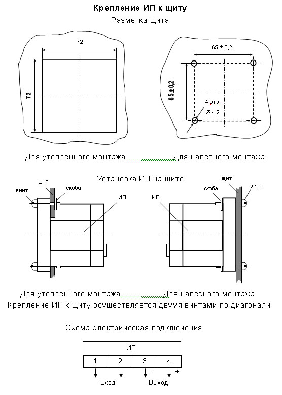 Конструктивно выполнены в одном исполнении, обеспечивающем навесное (с передним присоединением монтажных проводов) и утопленное крепление.