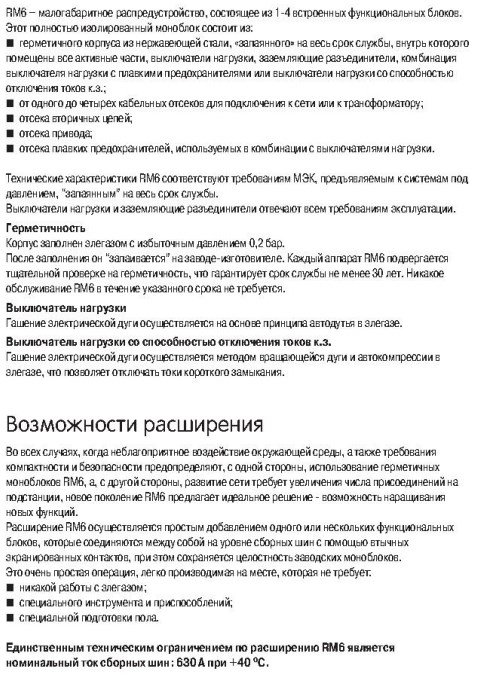 Ячейки RM6 IIDI отличаются следующими особенностями: