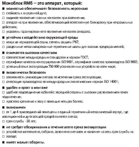 - экологической безопасностью, поскольку по окончании срока эксплуатации элегаз можно утилизировать; легкостью и удобством монтажа (блок крепится к полу при помощи четырех болтов); экономичностью (срок службы ячейки – 30 лет);