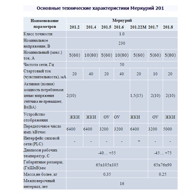 Передаточное число имп./кВтчас | 6400 | 6400 | 3200 | 3200 | 6400 | 3200 | 5000 |