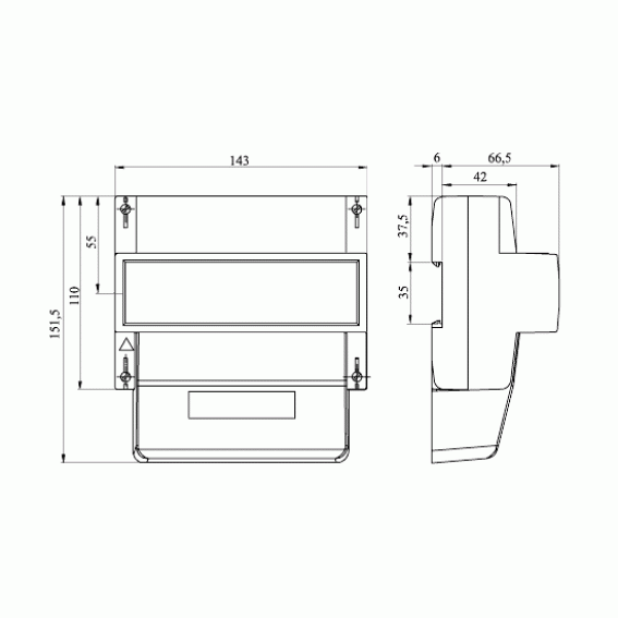 Устанавливается на рейку ТН-35 и в щиток (счетчик комплектуется двумя крышками).