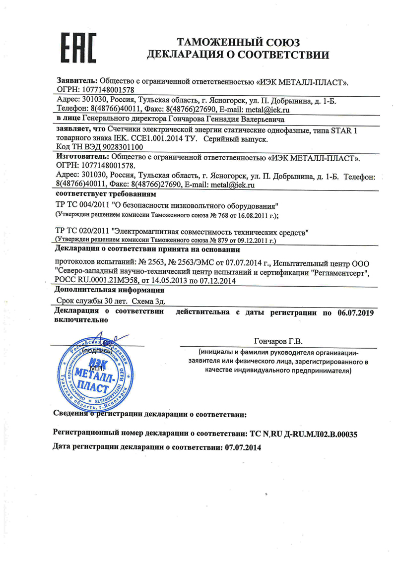 Счётчики электрической энергии STAR внесены в Государственный реестр средств измерении за номерами 59305-14 и 59306-14.