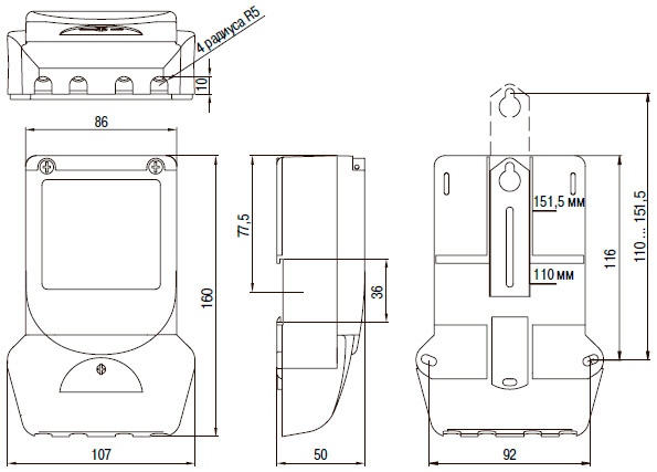 - Крепление клеммных крышек в центральной части с пазами под пломбу энергоснабжающей организации;