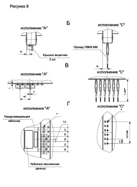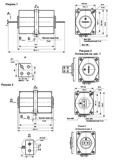 Трансформаторы имеют 4 конструктивных исполнения («1», «2», «3» и «4»), каждое из которых по 2 варианта длины корпуса: