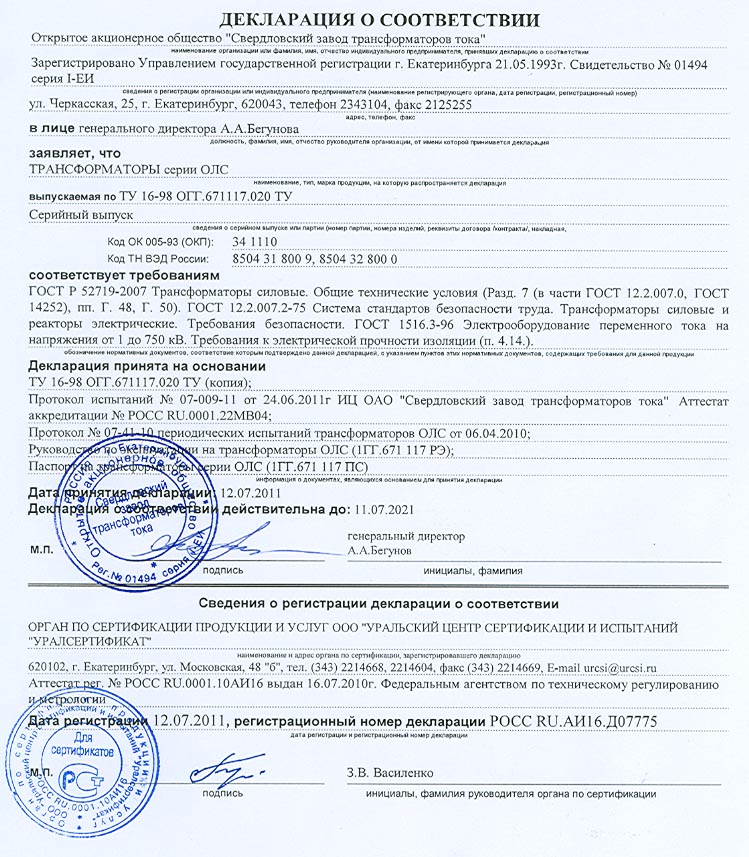 Производитель: ОАО"Свердловский завод трансформаторов тока"