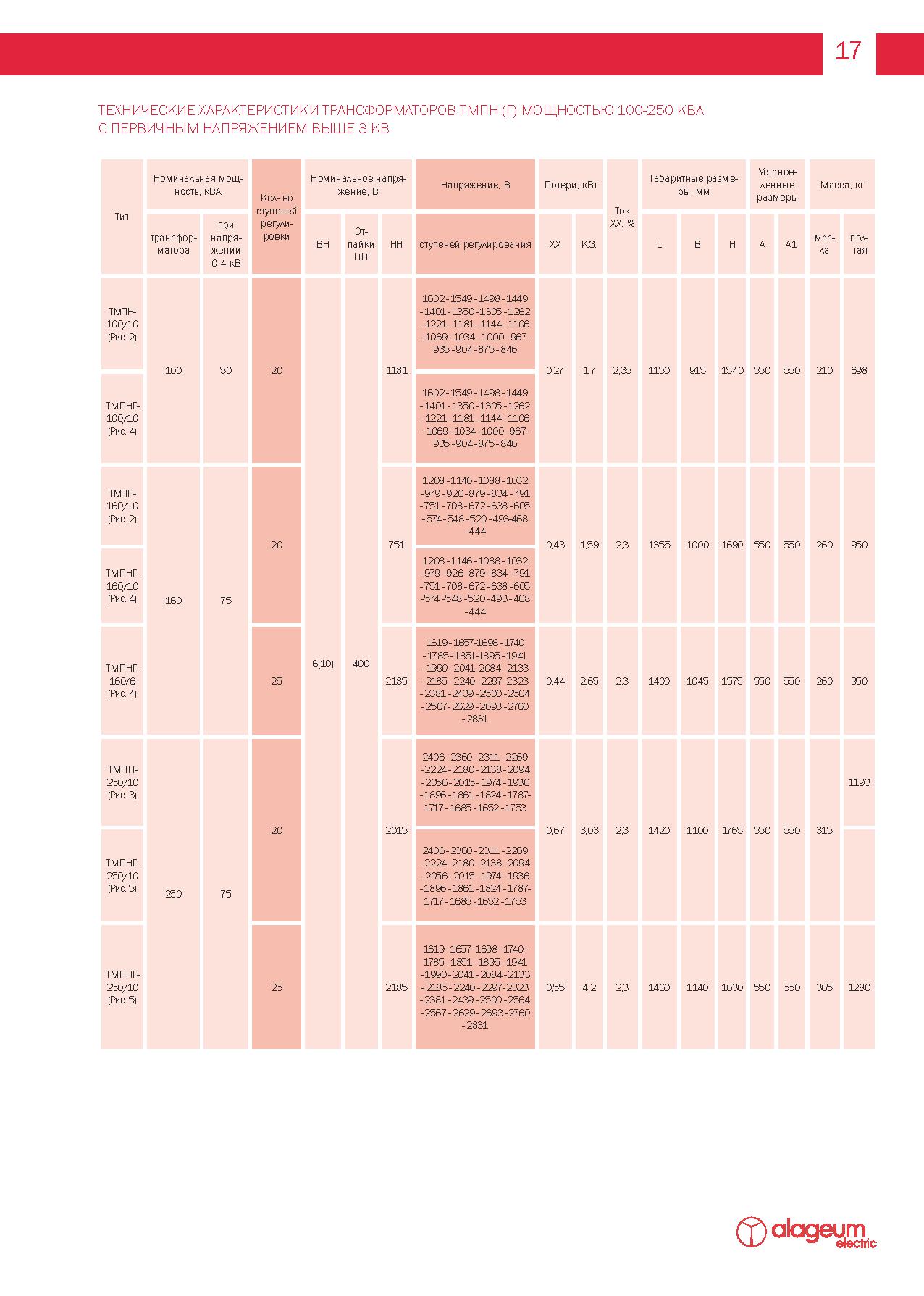 ТЕХНИЧЕСКИЕ ХАРАКТЕРИСТИКИ ТРАНСФОРМАТОРОВ ТМПН (Г) МОЩНОСТЬЮ 100-250 КВА С ПЕРВИЧНЫМ НАПРЯЖЕНИЕМ ВЫШЕ 3 КВ