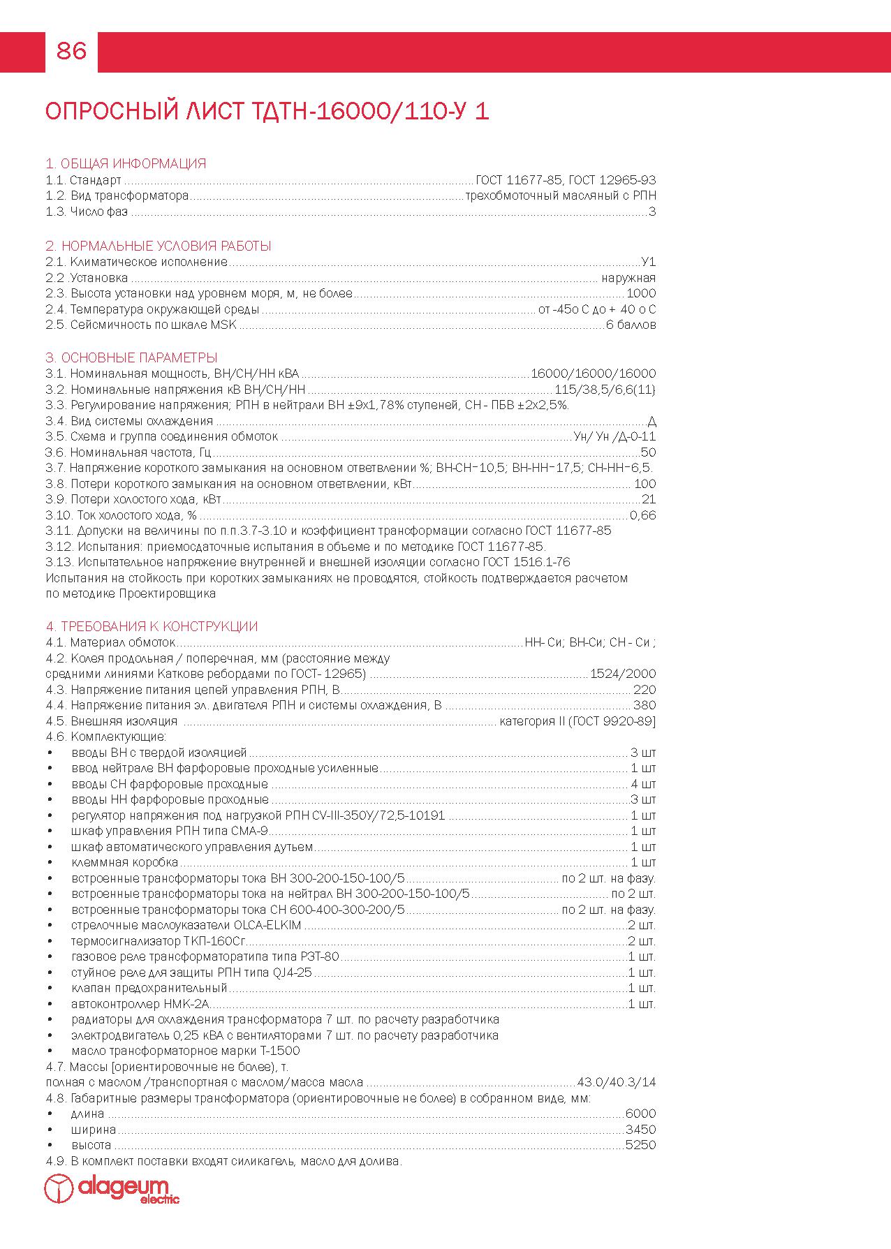 ТЕХНИЧЕСКИЕ ХАРАКТЕРИСТИКИ ТРАНСФОРМАТОРОВ ТИПА ТДТН-10000, 16000/110-У1