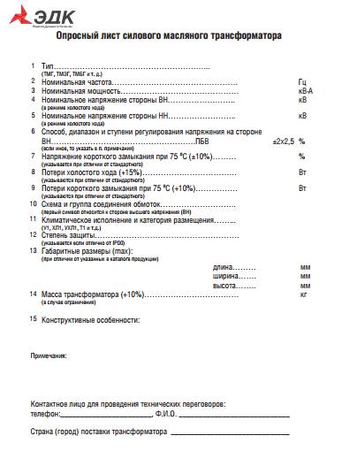 Трехфазные масляные трансформаторы ТМГ предназначены для преобразования электроэнергии в сетях энергосистем и потребителей электроэнергии в условиях наружной или внутренней установки умеренного (от плюс 40 до минус 45 о С ) или холодного (от плюс 40 до минус 60 о С ) климата. Окружающая среда невзрыво- опасная, не содержащая пыли в концентрациях, снижающих параметры изделий в недопустимых пределах. Трансформаторы не предназначены для работы в условиях тряски, вибрации, ударов, в химически активной среде. Высота установки над уровнем моря не более 1000 м. Номинальная частота 50 Гц. Регулирование напряжения осуществляется в диапазоне до ± 5 % на полностью отключенном трансформаторе (ПБВ) переключением ответвлений обмотки ВН ступенями по 2,5 %. Трансформаторы ТМГ герметичного исполнения, без маслорасширителей. Температурные изменения объема масла компенсируются изменением объема гофров бака за счет пластичной их деформации. Для контроля уровня масла трансформаторы снабжаются маслоуказателем поплавкового типа. Для предотвращения возникновения избыточного давления в баке сверх допустимого в трансформаторах мощностью от 16 до 63 кВ. А устанавливается предохранительный клапан. Для контроля внутреннего давления в баке и сигнализации в случае превышения им допустимой величины в трансформаторах мощностью 100 кВ. А и выше, размещаемых в помещении, предусматривается по заказу потребителя установка электроконтактного мановакуумметра. Для измерения температуры верхних слоев масла на крышке трансформаторов предусмотрена гильза для установки жидкостного стеклянного термометра.