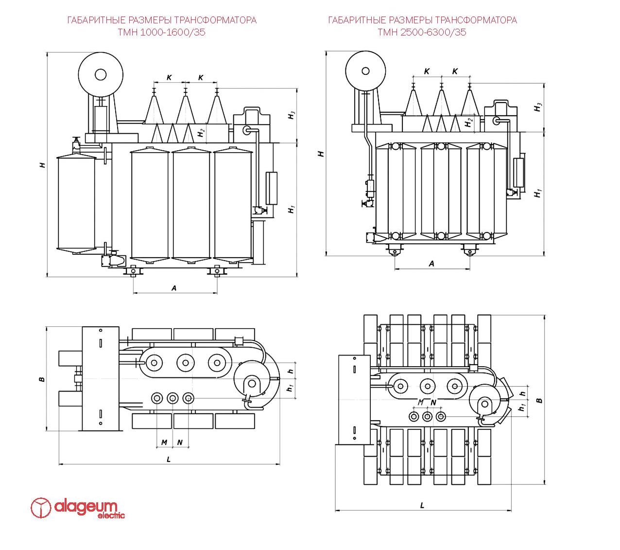 ТМН-1000/35 | 2750 | 1450 | 2600 | 1510 | 280 | 710 | 200 | 200 | 400 | 190 | 235 | 1070 | 4660 | 4260 | 1290 | |