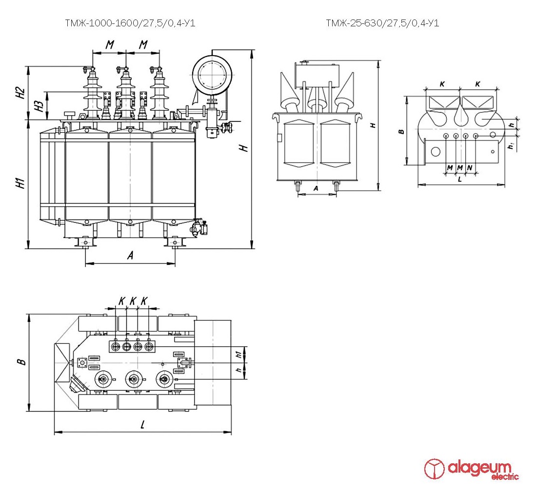 ТМЖ-1000/27,5/0,4 | 2310 | 1270 | 2385 | 1545 | 470 | 350 | 400 | 1070 | 145 | 215 | 210 | 3850 | 3850 | 950 | |
