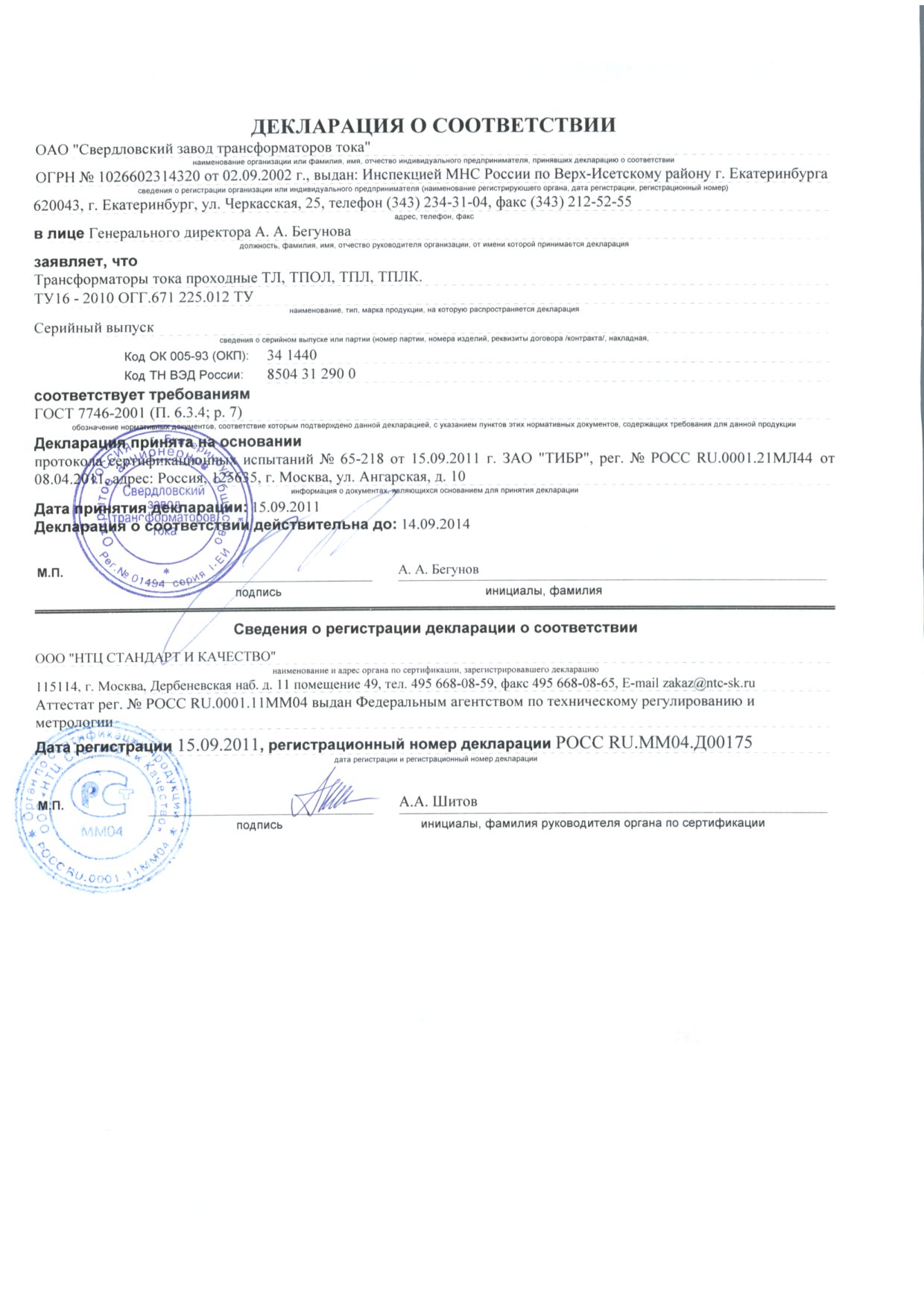 Производитель: ОАО"Свердловский завод трансформаторов тока"