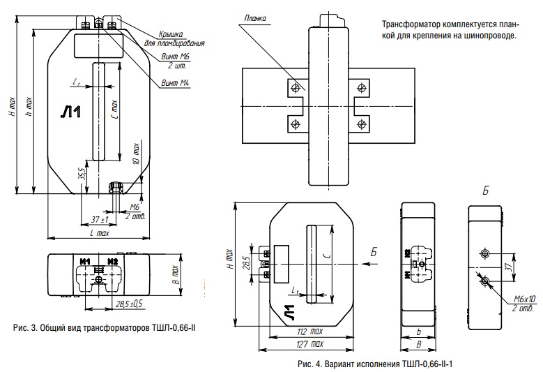 Трансформатор служит для передачи сигнала измерительной информации измерительным приборам или устройствам защиты и управления. Первичной обмоткой трансформатора служит шина распределительного устройства, пропускаемая через окно трансформатора. Выводы вторичной обмотки расположены на корпусе трансформатора. Обозначения первичной и вторичной обмотки находятся на трансформаторе. Трансформатор имеет один коэффициент трансформации и одну вторичную обмотку для измерений. Выводы вторичной обмотки закрываются прозрачной крышкой с возможностью пломбирования. Трансформатор крепится на шине с помощью планки с прижимными винтами. Планка поставляется по отдельному заказу. Климатическое исполнение У2 и Т2.