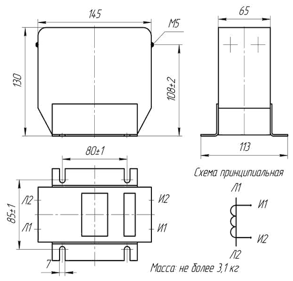 Для выработки сигнала измерительной информации для измерительных приборов, в сетях переменного тока на напряжение 0,66 кВ, промышленной частоты 50 Гц. Класс точности 0,5.Технические характеристики ТКС-0,66