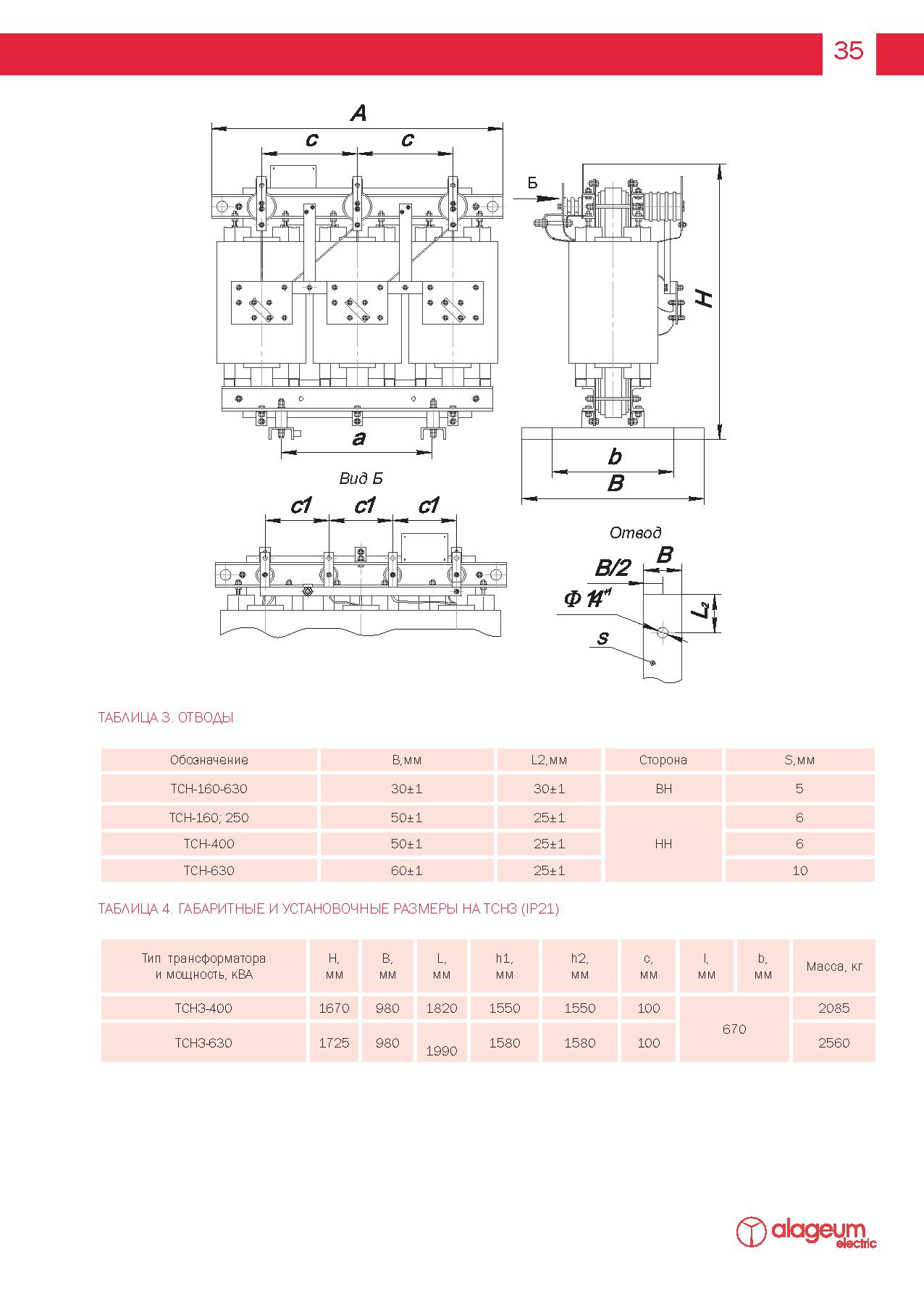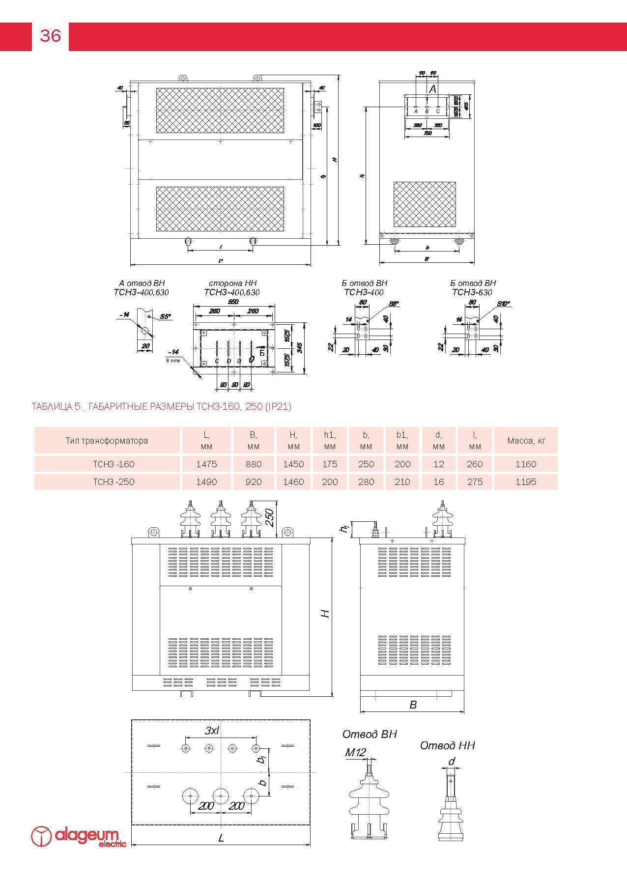 ТАБЛИЦА 5 . ГАБАРИТНЫЕ РАЗМЕРЫ ТСНЗ-160, 250 (IP21)