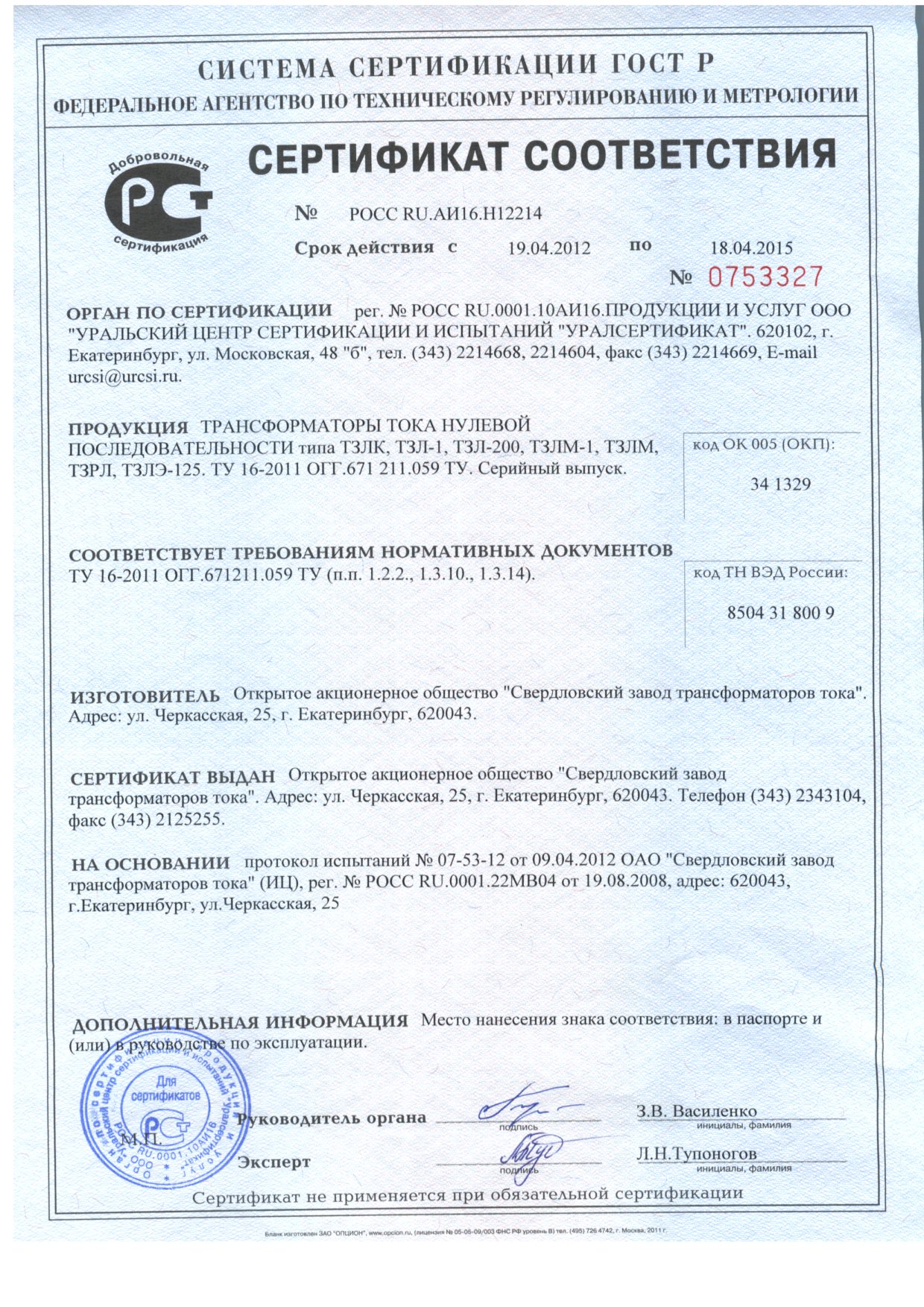 Производитель: ОАО"Свердловский завод трансформаторов тока"