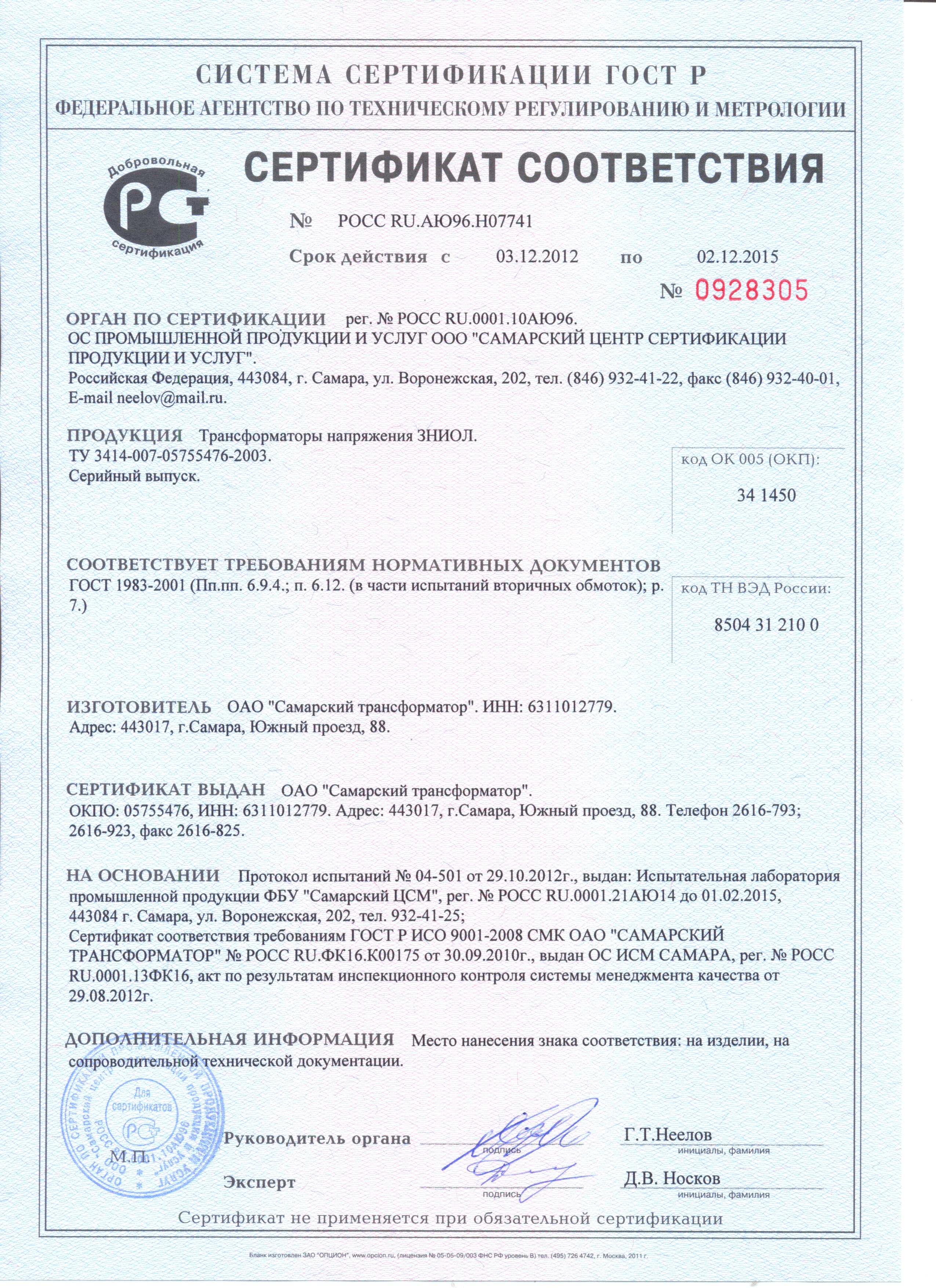 Производитель: Холдинговая компания "ОЭнТ" (ОАО "Самарский трансформатор")