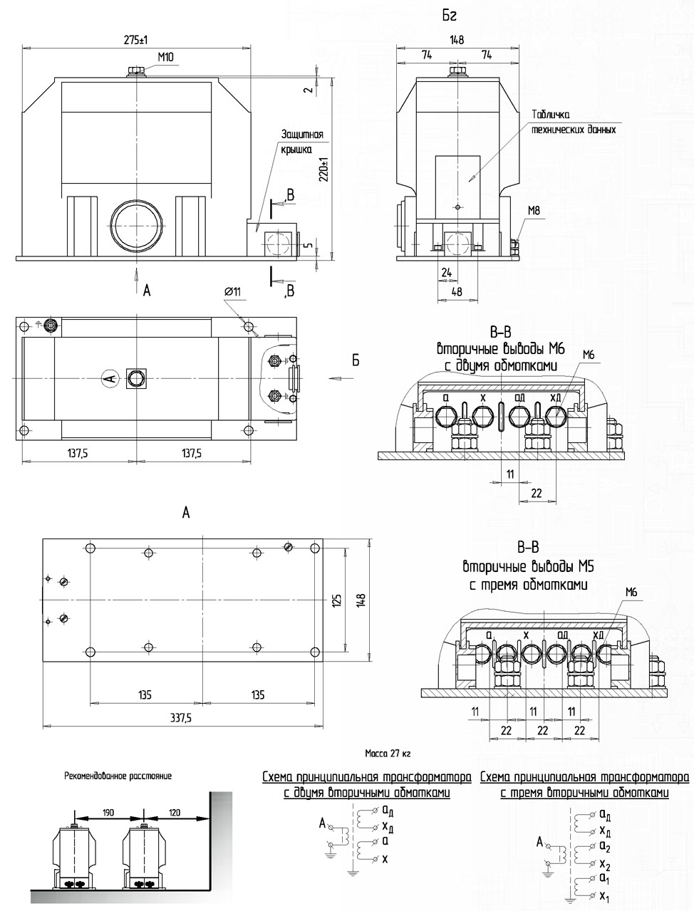 Первичный вывод может располагаться либо с лицевой стороны трансформатора, либо с тыльной. Трехфазная группа может иметь четыре варианта комплектования.