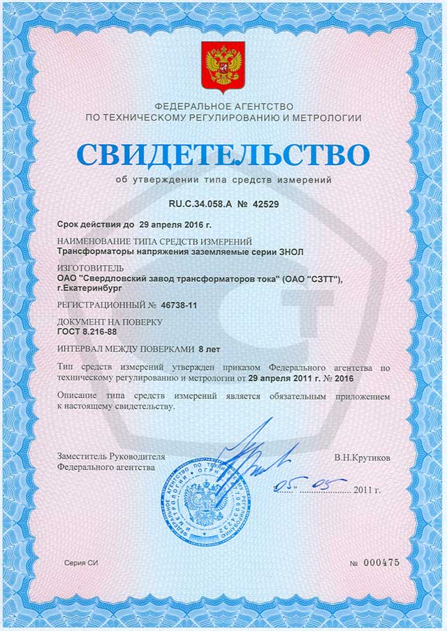 Производитель: ОАО"Свердловский завод трансформаторов тока"