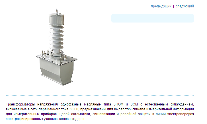 Трансформаторы однофазные масляные тип ЗОМ, ЗНОМ-27,5, ЗНОМ-35, ЗНОМ-35-65, ЗНОМ-35-66 с естественным охлаждением, включаемые в сеть переменного тока частотой 50 Гц, предназначены для выработки сигнала измерительной информации для измерительных приборов, цепей автоматики, сигнализации и релейной защиты в линий электропередач электрифицированных участков железных дорог.