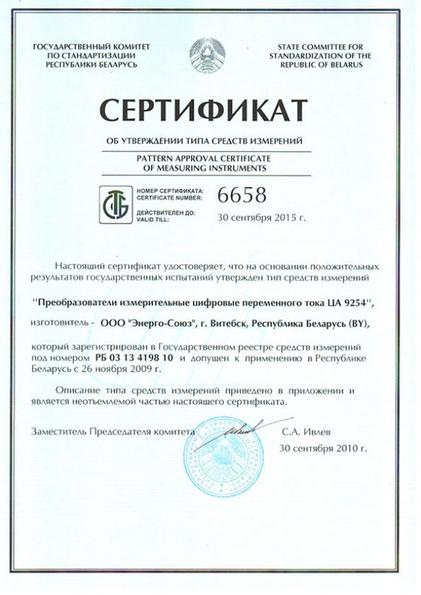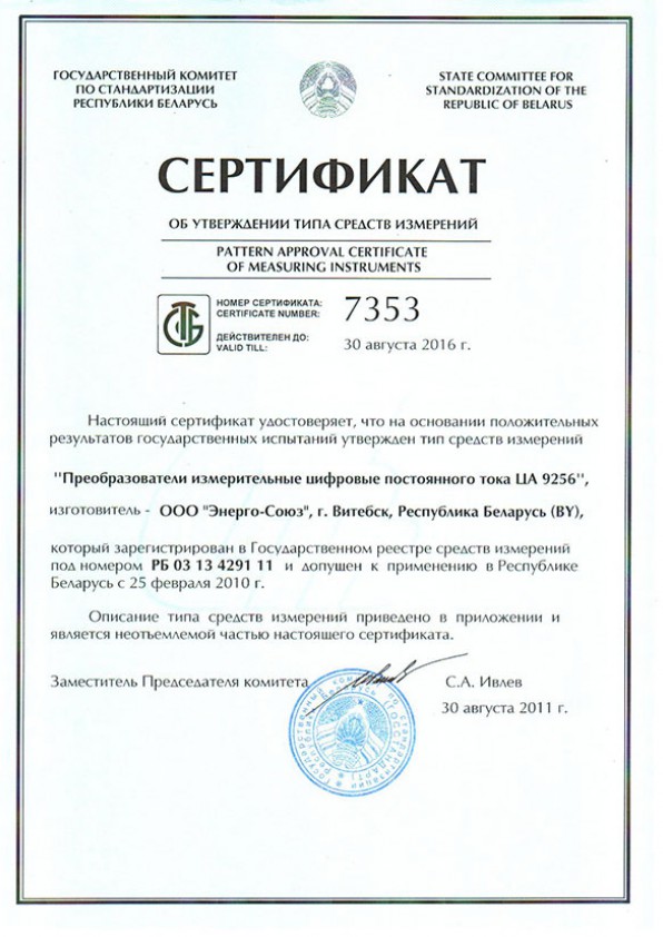 Пример записи при заказе измерительных преобразователей ЦА 9254Е, с диапазоном измерения преобразуемого входного сигнала 0 – 1 А, с портом