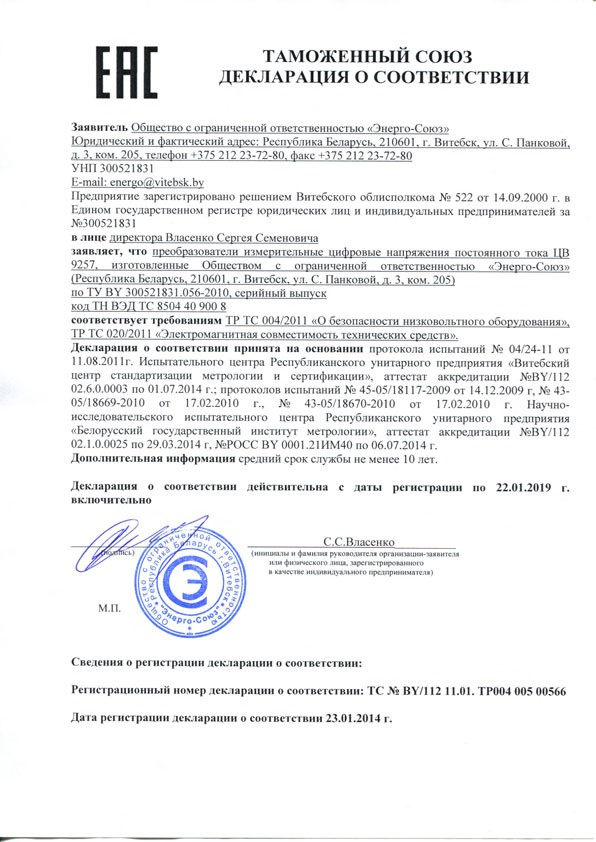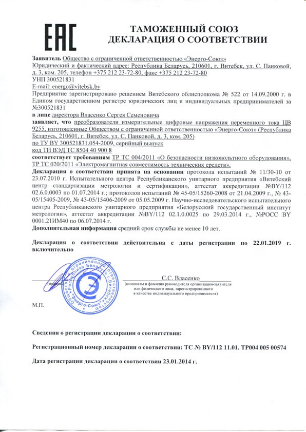 - измерительной цепи с номинальными значениями входного сигнала 60 В, не более, В·А | 0.10 |
