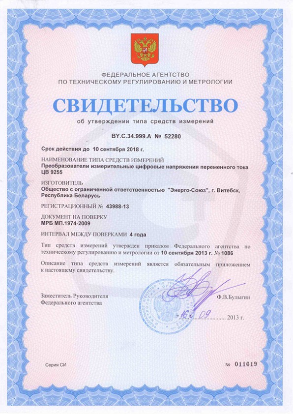 - измерительной цепи с номинальными значениями входного сигнала 400 и 500 В, не более, В·А | 0.70 |