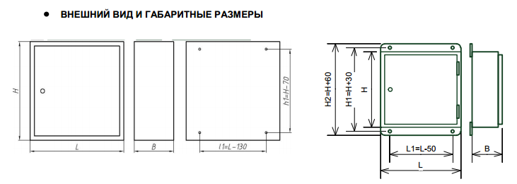 Ящик каждого типоисполнения имеет штампосварную конструкцию с передней дверью, закрывающейся на замки.